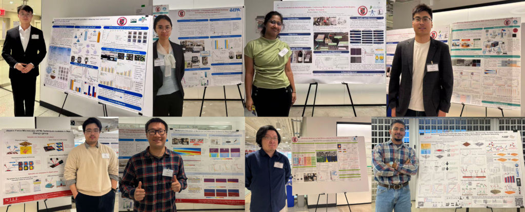 All PhD students and postdoctoral researchers from Dr. Wen Zhang’s research group at the New Jersey Institute of Technology (NJIT) presented posters during the poster session at the AEESP Distinguished Lecture. Their work spanned membrane science, nanobubble technologies, and resource recovery, contributing to discussions on innovative solutions for global water challenges.
